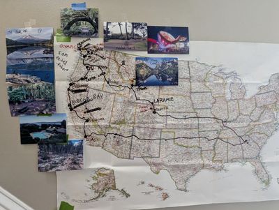 When you’re figuring out your route, I recommend getting a big paper map. Try drawing out your route by hand so you can see the big picture, spot the most direct paths, and make sure you’re not zig-zagging all over the country. Google Maps is good, but there’s something about seeing it all laid out on paper that really helps with planning. I hang one up on the wall in our house to get everyone pumped.